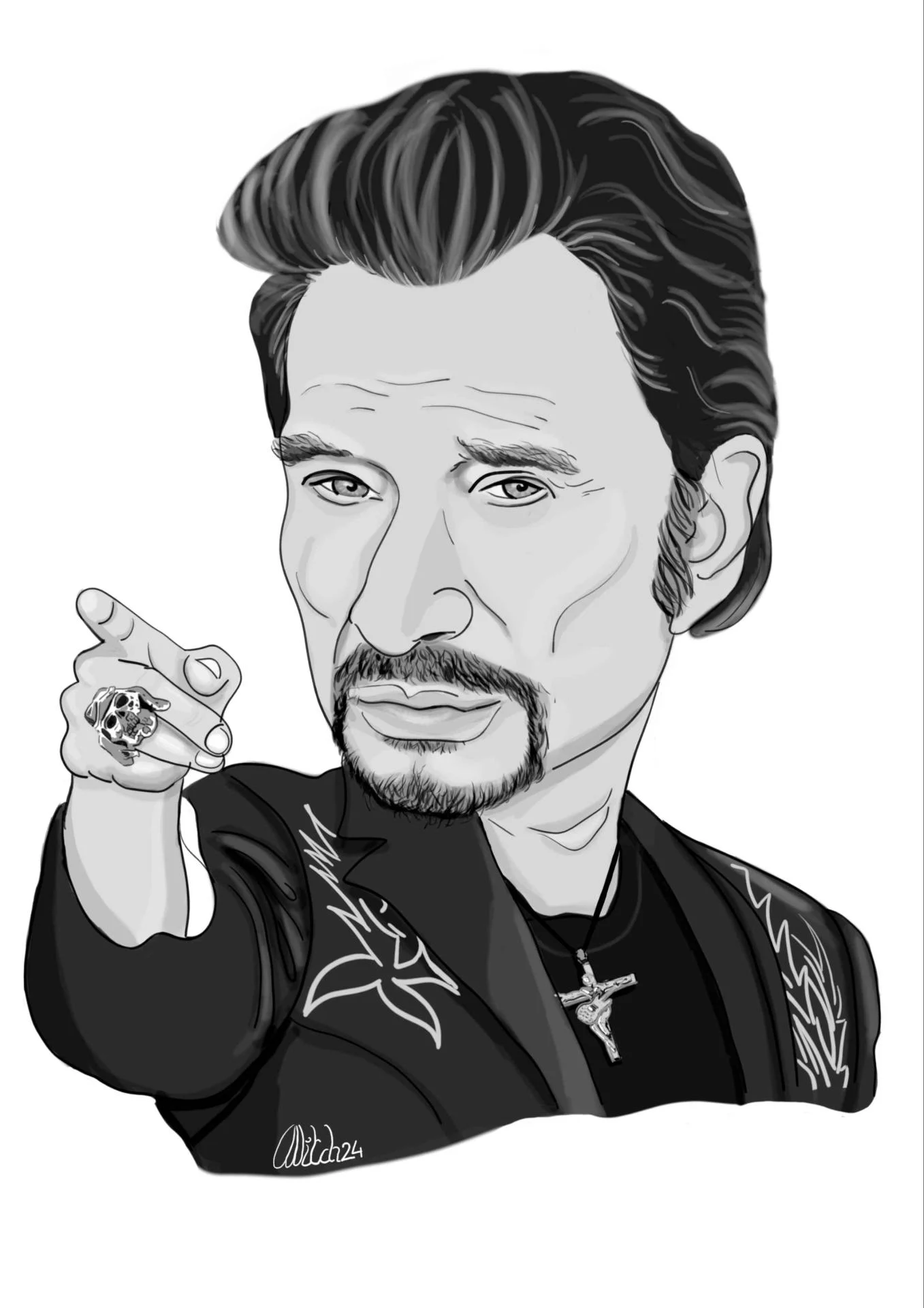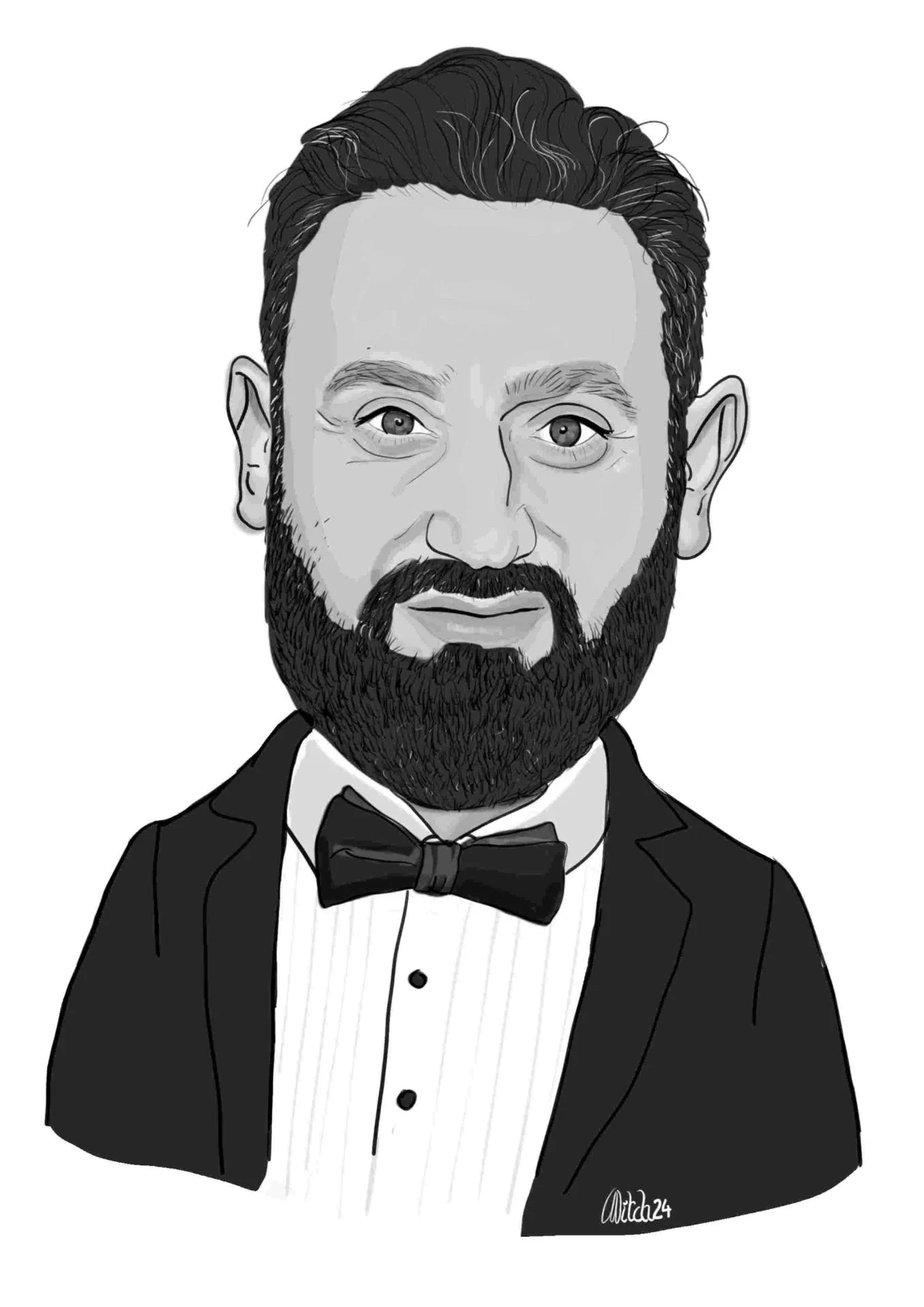Caricature noir et blanc visage + buste, avec un rendu ultra précis et une finition en très haute définition. Vous pouvez l’imprimer sur le support de votre choix. Une fois finalisée, votre caricature est envoyée par mail en format JPEG, PNG, PDF ou GIF (ou tout autre format sur demande) afin de finaliser la transaction et procéder au paiement.