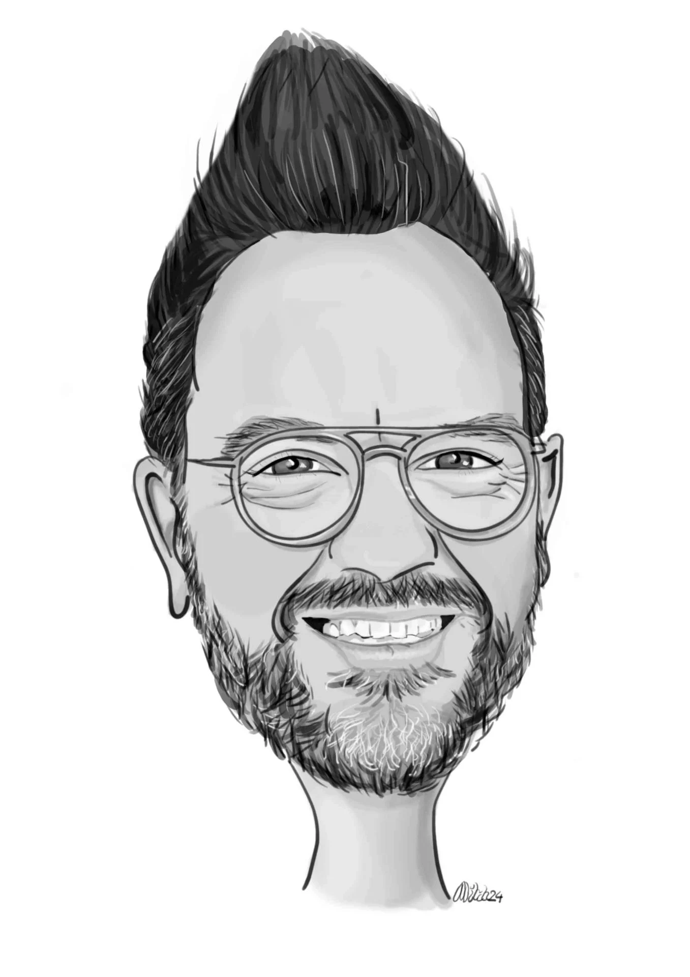 Ceci est un exemple de caricature personnalisée en noir et blanc.