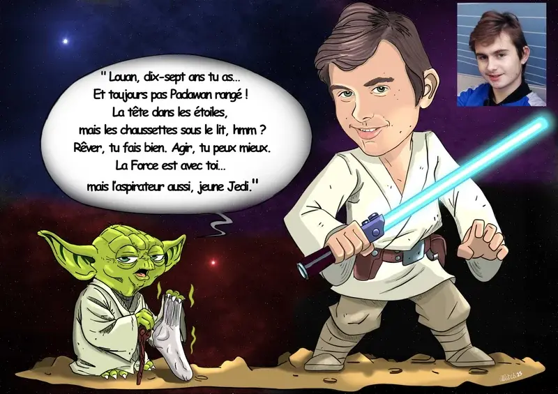 Ceci est un exemple de caricature personnalisée avec mise en scène.